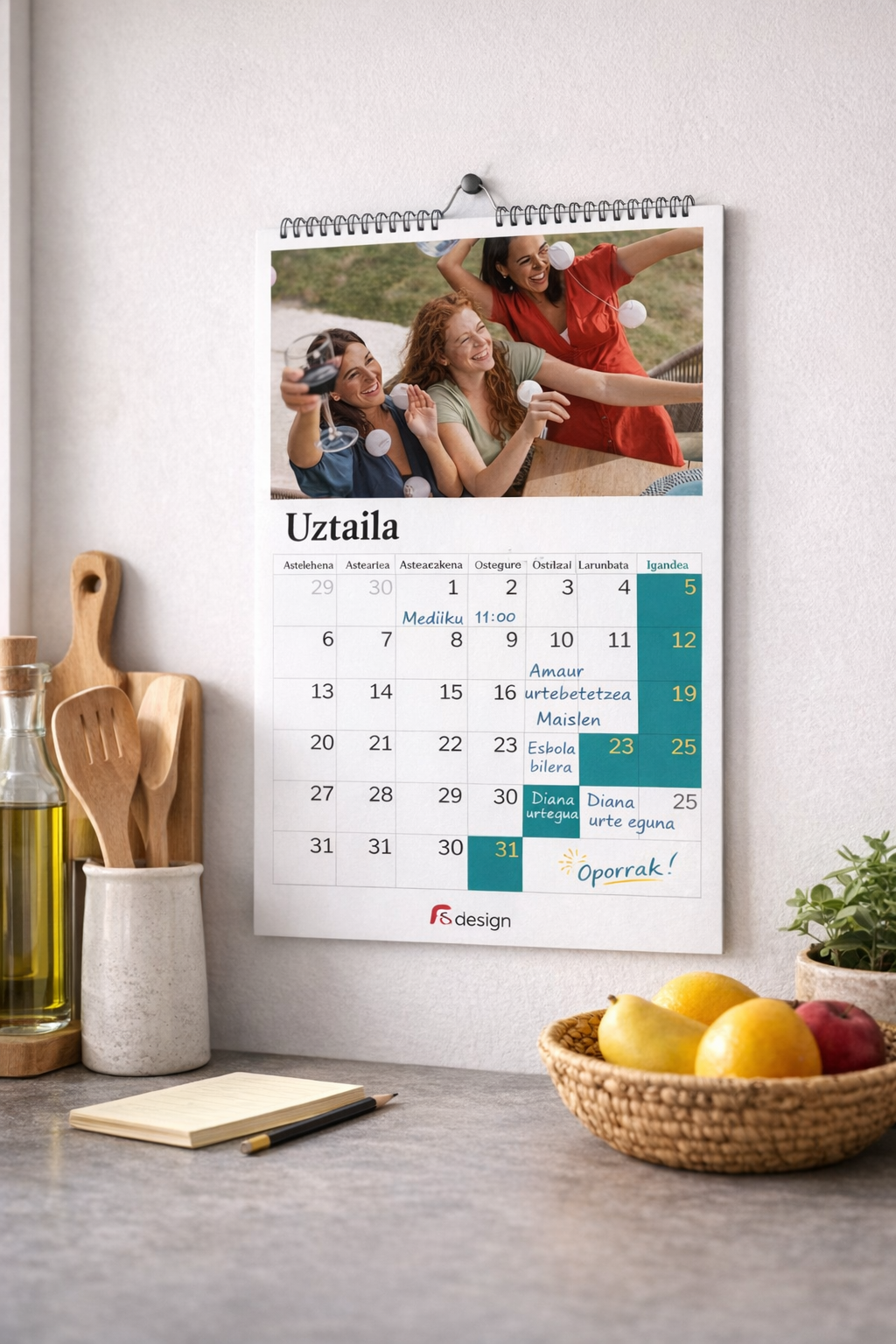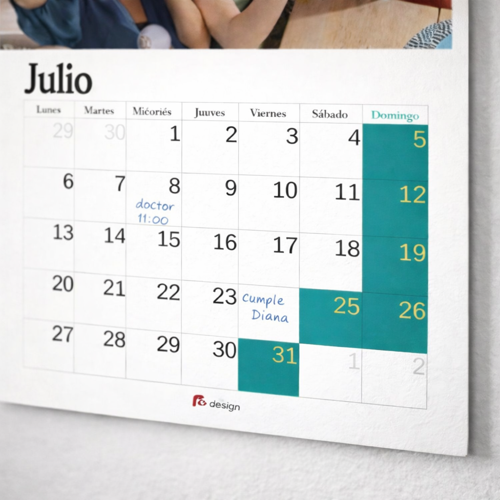 Personalízalo al máximo en nuestro editor: cambia los colores de fondo y añade textos o imágenes en cada día.