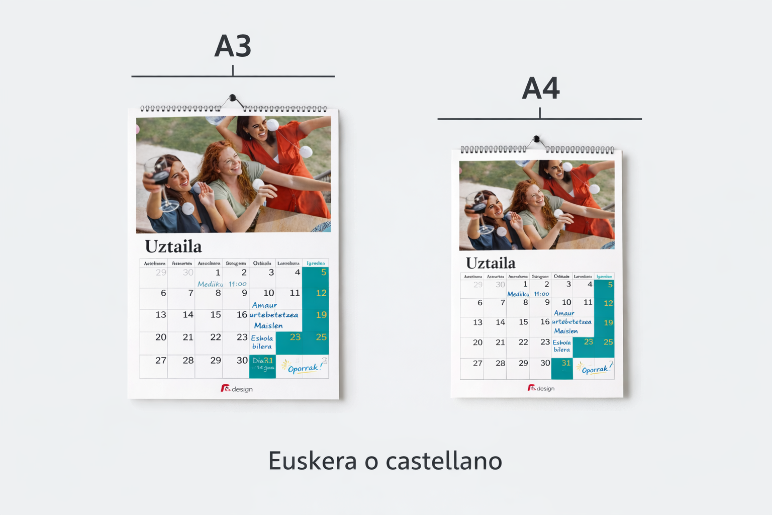 Disponible en tamaño A4 y A3, y en euskera o castellano, para adaptarse a tu espacio y a tu idioma.