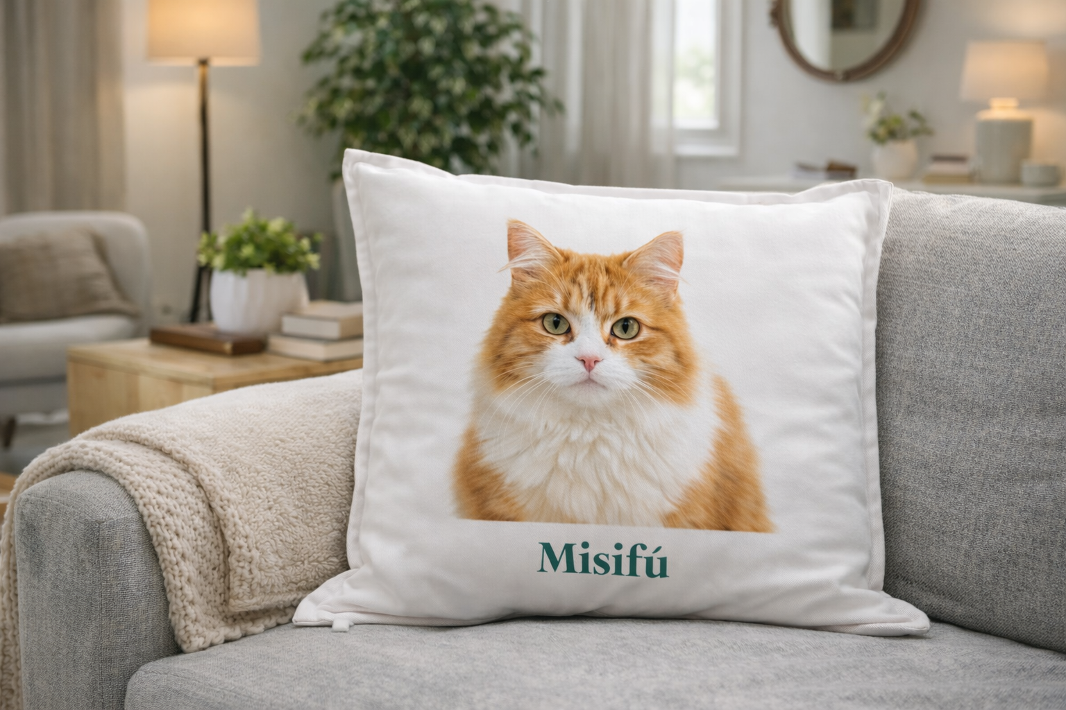 Cojín de algodón personalizable de 50x50 cm, ideal para decorar tu hogar con un toque único.