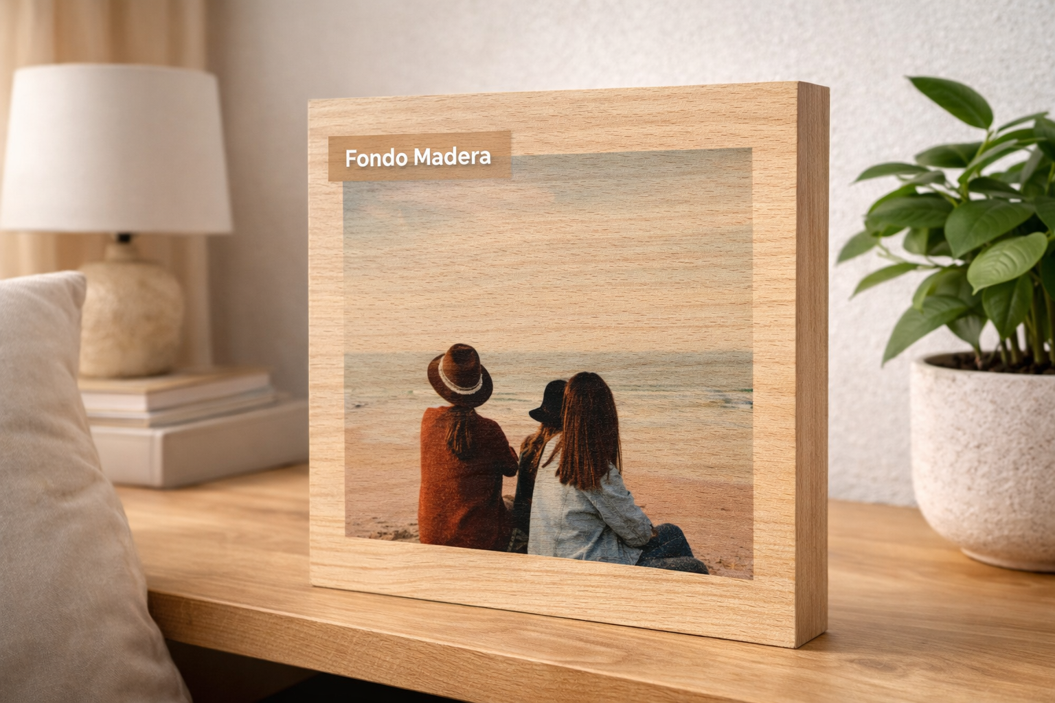 En la fotomadera de 2 cm la imagen se fusiona con la madera natural, dejando que su textura, su veta y su carácter formen parte del resultado final.