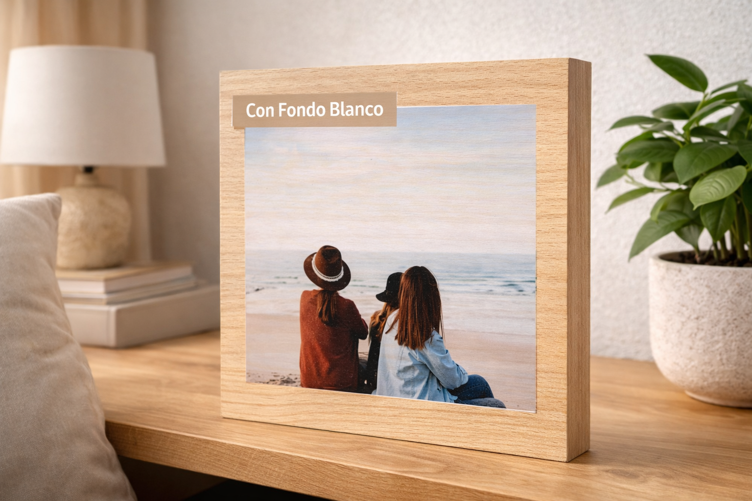 Sin fondo blanco: La veta queda visible en las zonas claras, creando un efecto cálido y orgánico donde la madera respira a través de la fotografía.